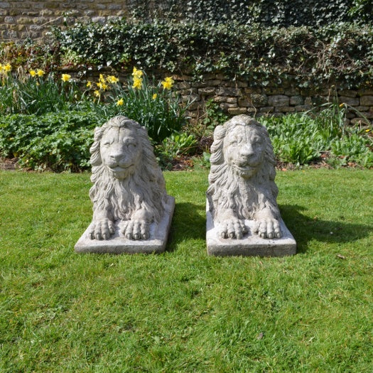 Pair of Recumbent Composition Lions