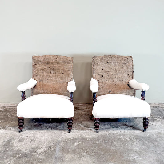 C994 Pair of Edwardian Armchairs / Library Chairs