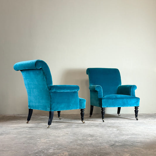 C994 Pair of Edwardian Armchairs / Library Chairs