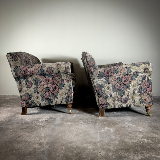 C994 Pair of Edwardian Armchairs / Library Chairs