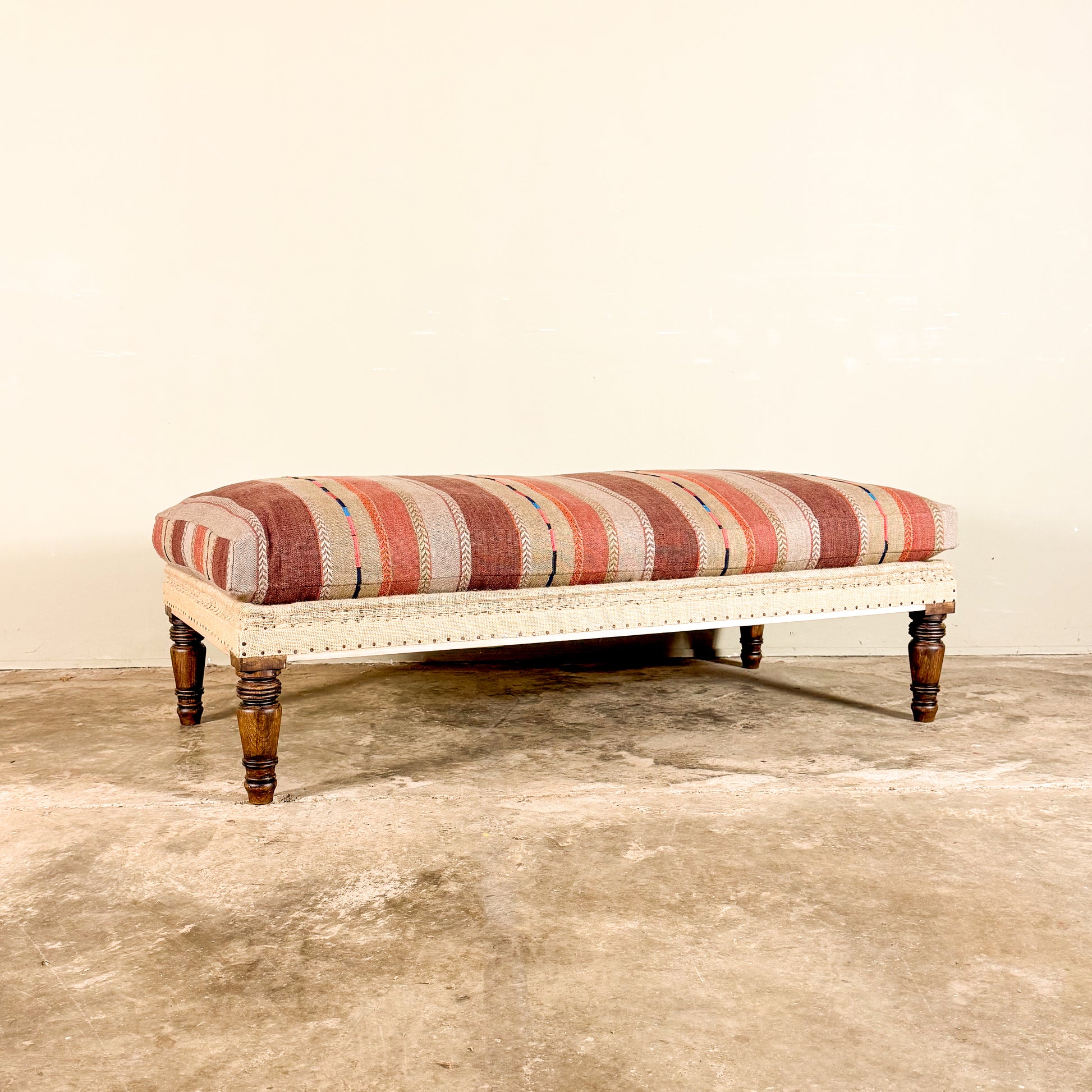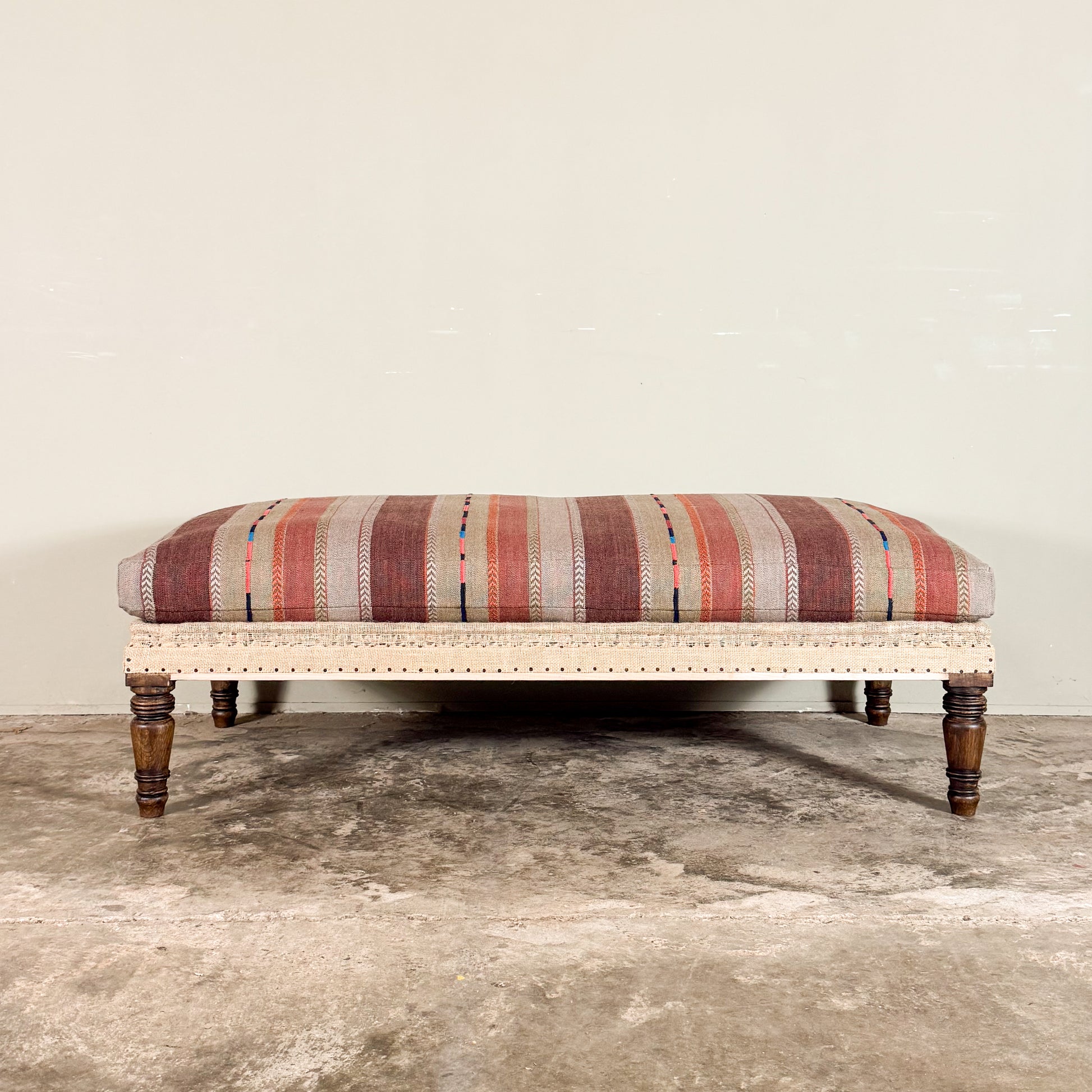 As with most of our footstools they can be made to any size you would like with any leg to suit your requirements. Most of our footstools are finished in either hessian or scrim, showing the hand stitching and finished with tacks. This gives the option of showing the craftsmanship and leaving as they are. Or alternatively a top cover can be added, and we are more than happy to help with the upholstery detailing.